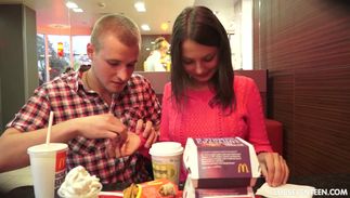 Engaging blond Savanah Gold with impressive tits is picked up by the perverted lad